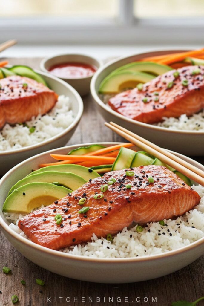 Honey Sriracha Salmon Bowls are a perfect balance of sweet, spicy, and savory flavors that make dinner both satisfying and exciting. This recipe features tender salmon coated in a rich honey sriracha marinade, baked until perfectly glazed, and served over a bed of rice with fresh vegetables.