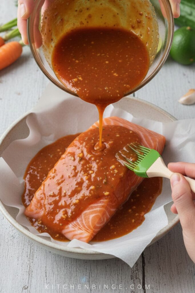 The honey balances the heat from the sriracha, creating a delicious glaze that coats the salmon beautifully.