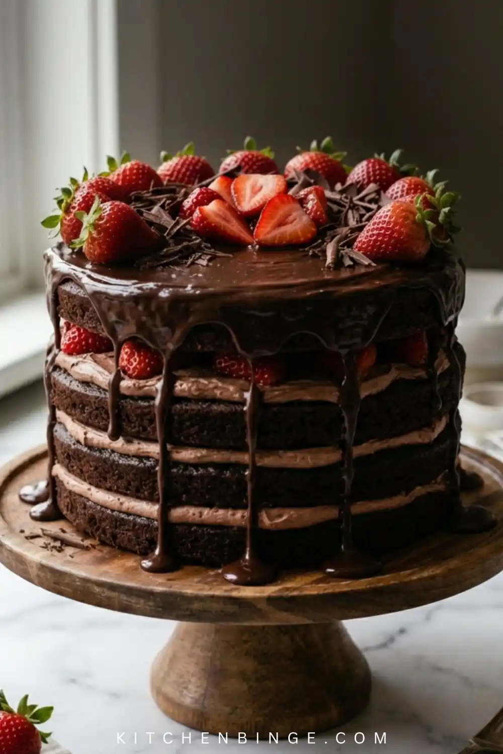 Unlike overly sweet desserts, this cake has a balanced flavor profile. The slight tartness of strawberries cuts through the richness of chocolate, creating a dessert that feels indulgent but not heavy.